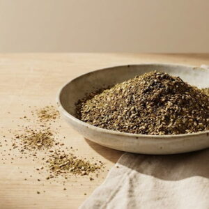 A traditional Levantine herb blend crafted with aromatic thyme, toasted sesame, and earthy spices. Perfect for bread, olive oil, and everyday Mediterranean cooking.